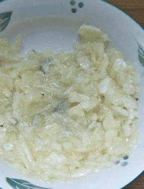 4、大蒜加少許鹽搗成蒜泥。