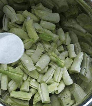 2、老豆角掐去兩頭,洗幹凈。