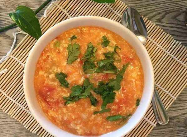 紅色的番茄、黃色的蛋花和白色的面疙瘩,再加上綠色蔥花小菜;看著那紅紅綠綠的面疙瘩湯,想著那熟悉的酸酸咸咸好味道,每天都是在幸福中度過的,每次喝到這個湯都是滿滿的開心。