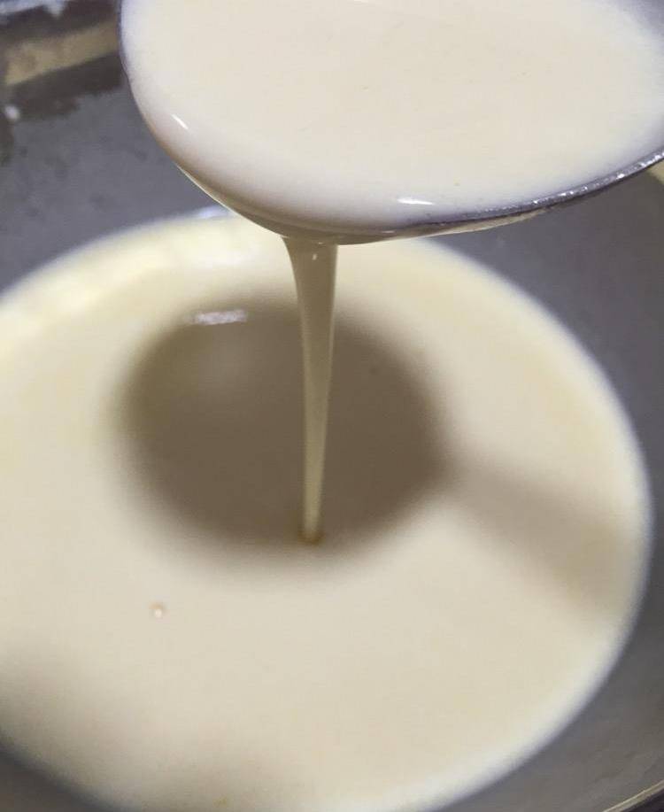 (2)用蛋抽攪拌成可流淌狀面糊;