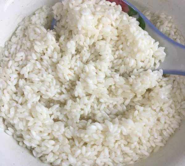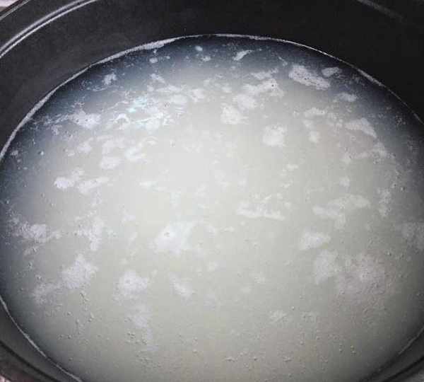 第5步、琺瑯鍋加水燒開,放入泡好的大米煮開用湯勺攪拌一下,中小火煮(期間看火防溢出來)。