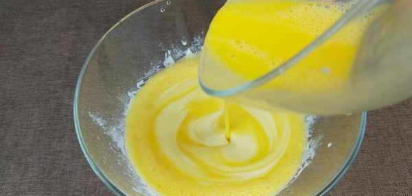 3、把打好的雞蛋液倒入面糊中,邊倒邊攪拌,使其均勻的融和起來