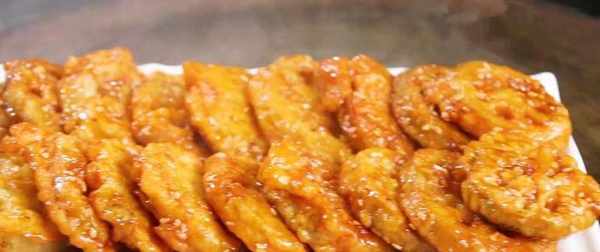 食材:蓮藕、雞蛋、面粉、食用油、番茄醬、白砂糖、白醋、生粉、白芝麻