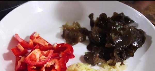食材:木耳、腐竹、紅辣椒、生薑、大蒜、細蔥、雞蛋、食用鹽、食用油、生粉