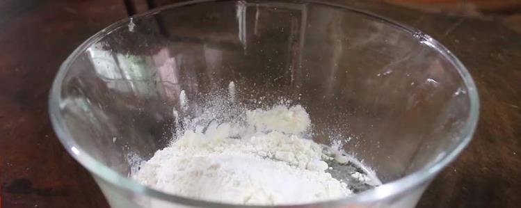 2.空碗裡打入一個雞蛋,接著再加適量面粉,然後倒點清水進去攪拌均勻。