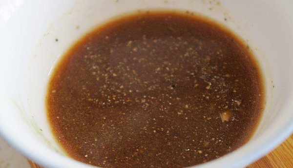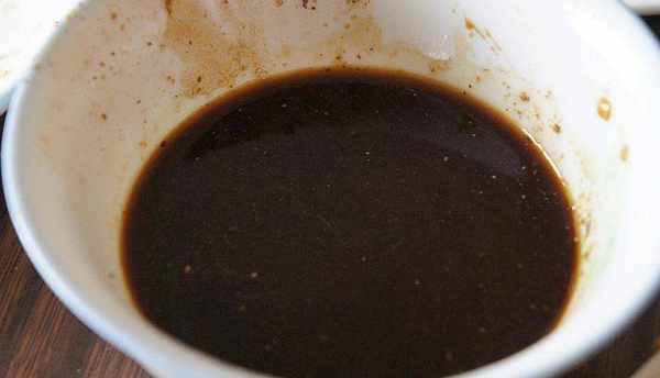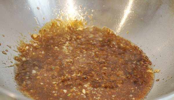 取一小碗,加入綠胡椒末,再加入適量醬油、紅酒、白糖、檸檬汁、淀粉調勻