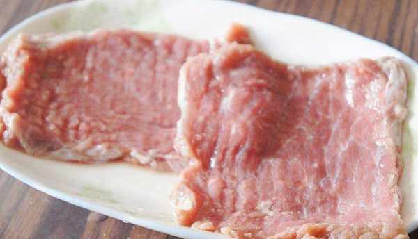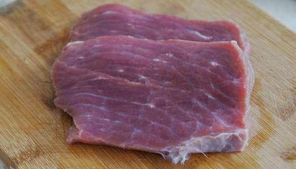 牛裡脊肉,切成25毫米薄厚均勻的兩片。
