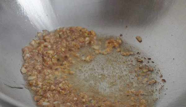 取鍋開火,加入食用油,等油熱瞭倒入切好的蔥末和蒜末,爆香。