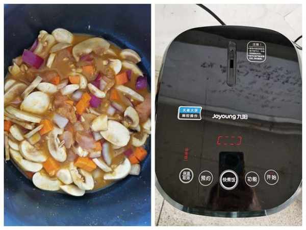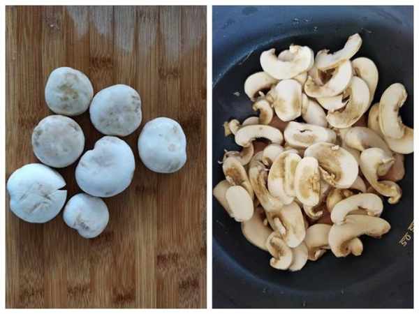 再巷子口菇洗淨,切成片也放入鍋裏,口蘑是一種富含植物纖維的食物,可以促進腸道的蠕動防止便秘,而且維他命含量和胺基酸含量都很豐富。