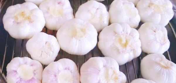 3.浸泡好的大蒜取出來晾幹,把幹朝下擺放,這樣比較容易把裡面的水滴出來。大蒜一定要全部晾幹,不然做出來的糖醋蒜很容易壞掉哦。可以把它放在太陽底下,也可以用電吹風吹,或者電風扇吹,都能加快大蒜晾幹哦。處理大蒜的過程中也切忌沾到油哦。