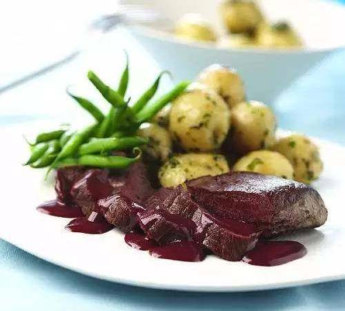 8.鹿肉燉嫩以後,開大火收汁,令汁料收幹至濃稠,最後放入鹽與胡椒調味,加上配菜即可。
