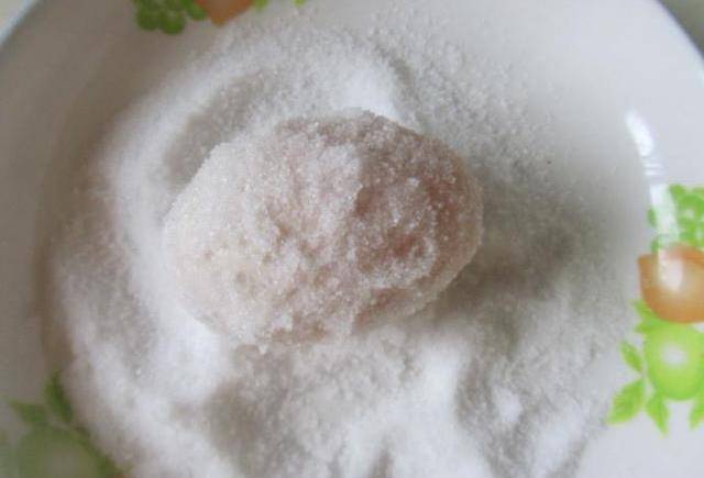 4、然後放在加工過的鹽中滾動,12個鴨蛋都均勻的裹上食鹽。