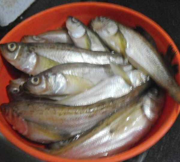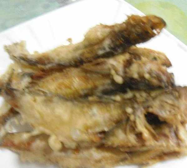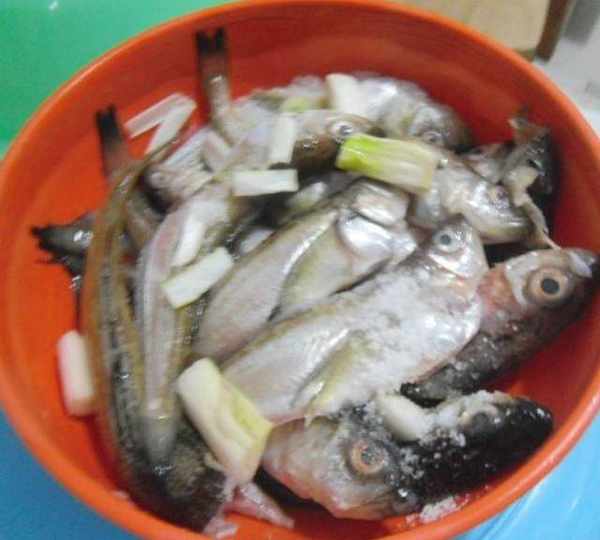 原料:小魚、淀粉、蔥薑、油、鹽、胡椒粉、白酒
