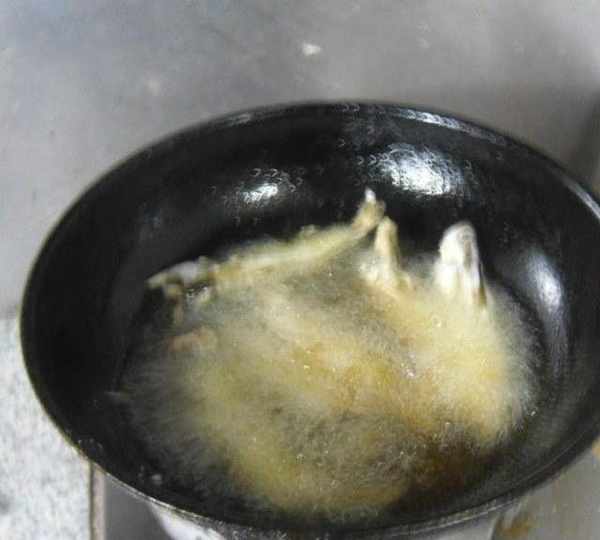 第5步、放入6成熱油溫的鍋中炸制。
