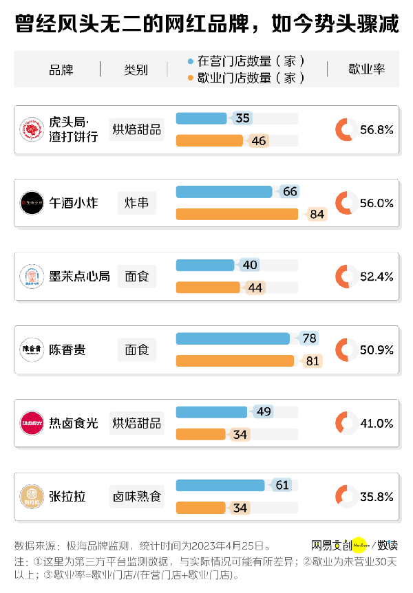 而在過去一年多時間裡, 大規模閉店的網紅小吃品牌們,不隻墨茉點心局一傢。