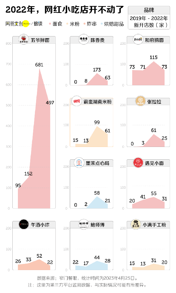 就像陳香貴一樣,整個 2022 年,粉面行業的發展都陷入瞭停滯狀態,這與 2021 年狂飆式擴張開店形成瞭鮮明的對比。