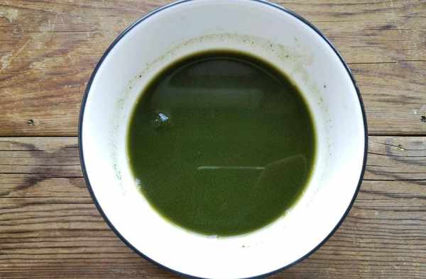 步驟四:澄粉中加入開水然後迅速地攪拌成糊,起鍋燒水,把艾草放到鍋中焯水,煮到艾草中有清香的味道散發出來瞭,撈出艾草,然後打成泥,不要太稀瞭。