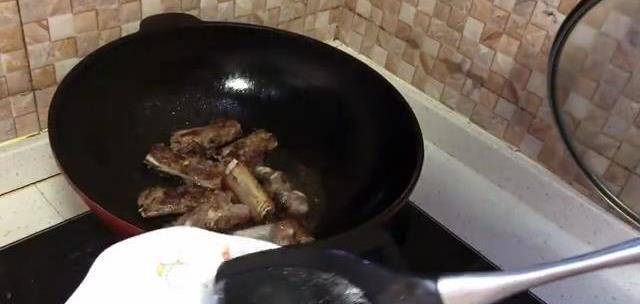 我們的下一道工序就是要煎排骨,我在這裡提到瞭煎,因此放排骨的時候不能一股腦全倒進去。這樣會導致排骨不能均勻受熱從而影響口感。所有的排骨都放進去後,需要拿鍋鏟翻動排骨,大概等到排骨的兩面稍稍泛出金黃,就可以盛出來瞭。