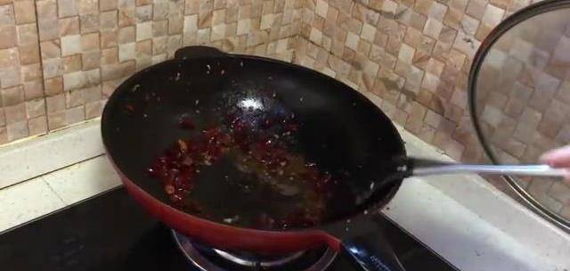 盛放在盤子裡後備用。此時鍋底留油,我們再下入薑末和蒜末,薑末蒜末可以多準備一些,一並放入。爆香後把幹辣椒倒進去,剛倒進去就能聞到一股辣味傳出。一起翻炒約一分鐘,最多一分鐘,不然鍋裡的薑末和蒜末會變糊。爆香後把排骨倒進去。