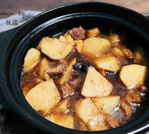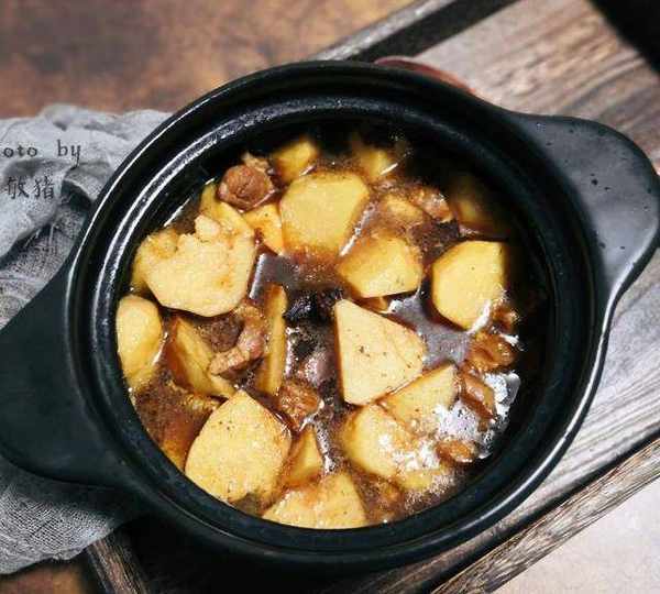 原料:豬肘、芋頭、黃酒、紅燒醬油、味極鮮、白糖、鹽、薑、香葉、八角、蔥。