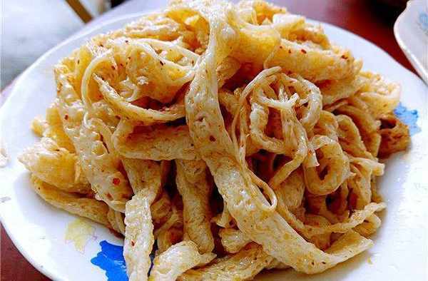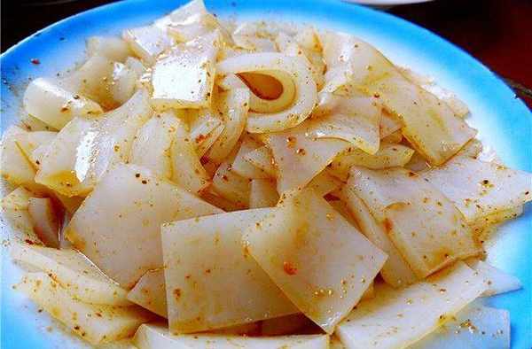 牛筋面皮。陜西面皮的一種,市面上一般比較少,吃起來非常勁道。