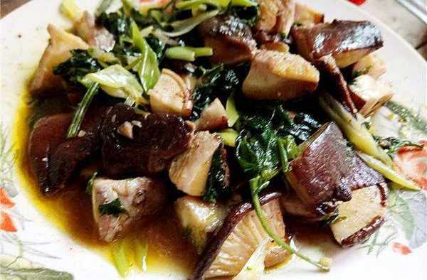 香菇炒青菜。一道純素菜,但姥姥將它燒出瞭紅燒肉的味道,非常好吃。老婆正在減肥,再加上她喜歡吃紅繞肉,所以這道菜是她的最愛瞭,最後被她光盤瞭。