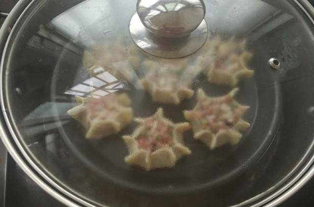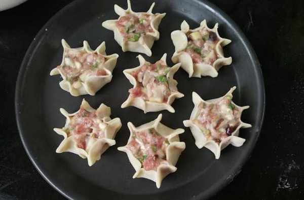 取餃子皮,在內填上肉餡,修成任意形狀,我手藝不怎麼樣,隨便的