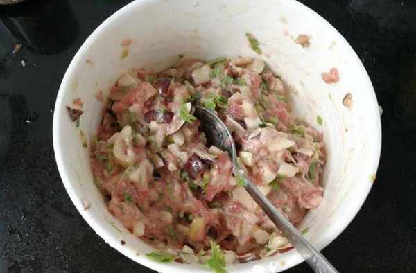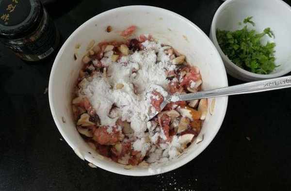 順時針拌均勻後再加入生粉,這樣拌餡會特有彈性