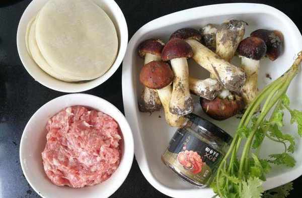 主料:豬肉200克,餃子皮50克,姬松茸50克,香菜15克