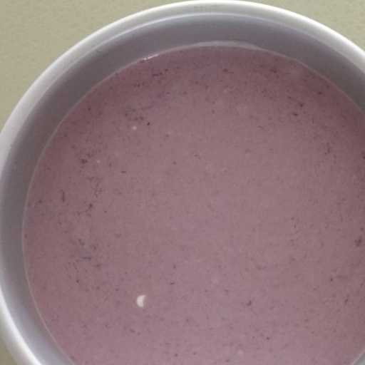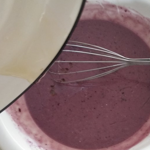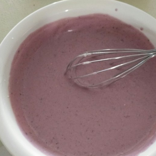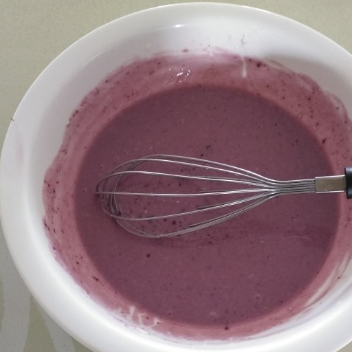 第4步、酸奶和藍莓醬融合攪拌均勻(兩種食材是液體還是固體,都一樣可以用)。