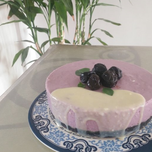 原料:奧利奧餅幹、黃油、藍莓醬、酸奶、淡奶油、吉利丁片、朗姆酒、糖分。