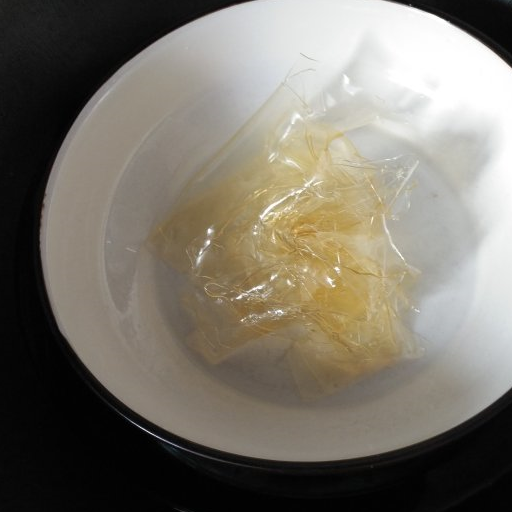 第3步、吉利丁片提前在冰水中軟化。