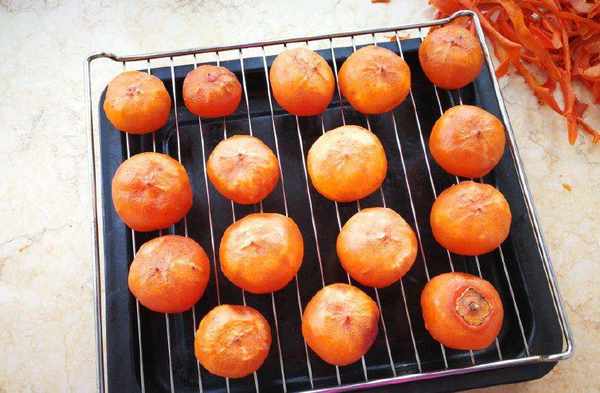 6、將柿子擺放在烤網上,放在有陽光的地方晾曬。這是晾曬瞭三四天時候的樣子。記住經常要給柿子翻個面。(如果能夠懸掛晾曬更好,就不用反復翻面瞭)