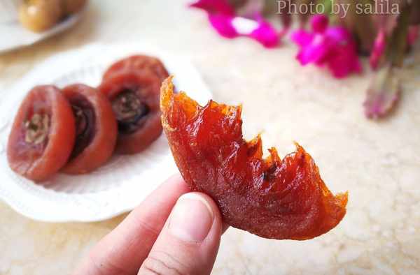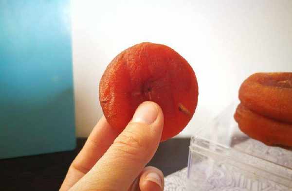 9、 繼續在有陽光的地方晾曬,裡面全部變軟後,就可以輕輕的按壓,將柿子壓扁。這是晾曬15天後的樣子,柿子餅很柔軟,這時就已經能夠食用瞭,口感很軟糯,非常甜。