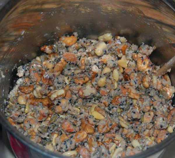 原料:面粉、糖、麥芽糖、香油、小蘇打、開水、熟面粉、糖桂花、瓜子仁、核桃仁、花生仁、青紅絲、冰糖碎。