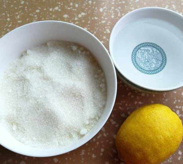 第1步、材料準備:白糖、檸檬、水。