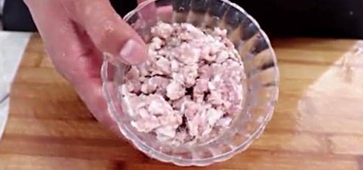 3、取適量的牛肉,提前用刀剁成肉末,備用。