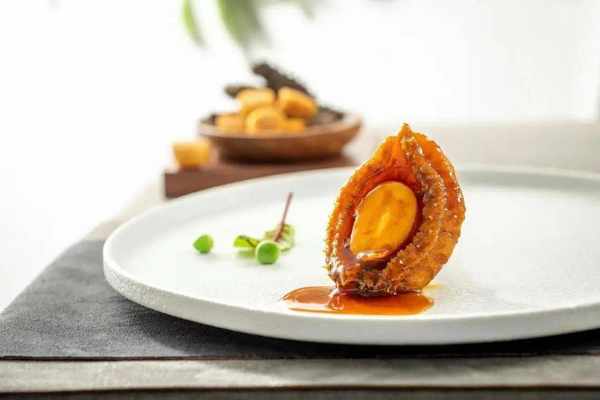 質量上乘的食材,加上守正創新的烹飪技法,不僅造就瞭鮑魚的獨特風味,也寓示激情爆燃、遊刃有餘;生意爆棚、年年有餘。