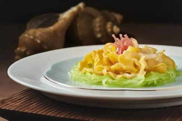 黃芥末,顧名思義,顏色呈現黃色,用芥菜的種子研磨後制成,味道辣中帶苦,常用作涼拌菜的調味料。閩菜烹調善用蝦油、沙茶、芥末、辣椒醬等多種調味,也因此構成閩菜獨有的風味。香螺是福建的優質海產之一,是閩菜中的高檔食材,取閩南傳統特色調味黃芥末來拌汆過的香螺片,黃芥末的入味讓人食欲大振,又能更好地體驗到螺片的鮮美、脆嫩。嘗上一口,帶著醬汁進入嘴裡,芥末的辣,螺片的爽脆,幸福充滿瞭整個口腔,螺片的鮮甜更是餘味無窮。