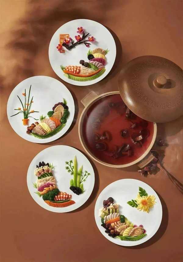 宋朝是公認的中國美學的高峰時代,在《山傢清供》著述中,每一道菜都流淌著人文與美學的“滋味”。在此次復原行動中,通過深度挖掘、演繹宋元傳統飲食文化的沉淀與升華,菜品、宴席與器皿、場景、樂曲、詩詞、書畫的綜合呈現,營造出石獅“獨一份”的宋元美學主題筵席。