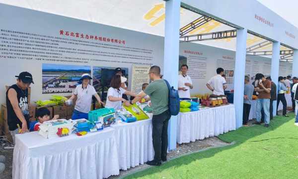 一批特色農產品也來到瞭活動現場,在農產品展示區內,企業、農戶代表現場吆喝,為遊客介紹陽新縣的特色農產品,給遊客提供購買服務。