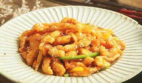 然後我們調一個汁,(如果喜歡西式吃法,不妨用幹辣椒面放入1勺鹽1勺味精調勻沾著吃),辣醬1勺,番茄汁1勺,1勺白糖,醋1勺,1點清水攪拌均勻,鍋內留一點油燒熱,倒入調好的汁,煮入味再把炸好的雞柳放入鍋中,翻炒變色,