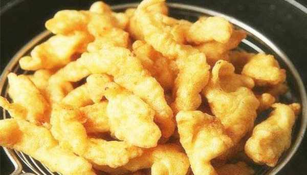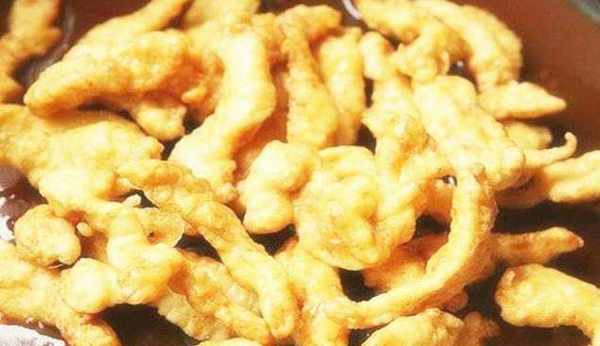熱鍋裡倒入適量的油,燒至6成熟,把雞胸肉放入鍋內,炸熟至金黃撈出,