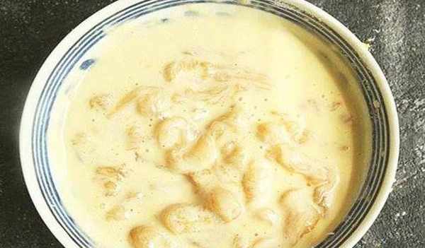 首先將雞肉用到切成細條狀,放在一邊備用,辣椒切絲,鍋內燒入熱水,待開後倒入辣椒過一下水,雞蛋打撒調勻,放入適量的面粉和清水調成糊狀,