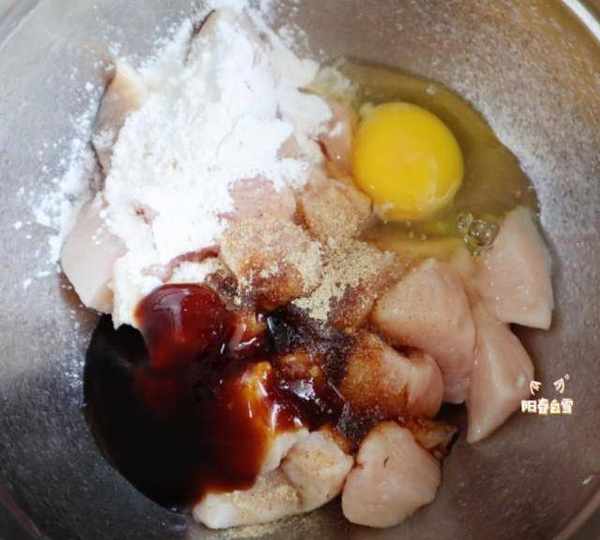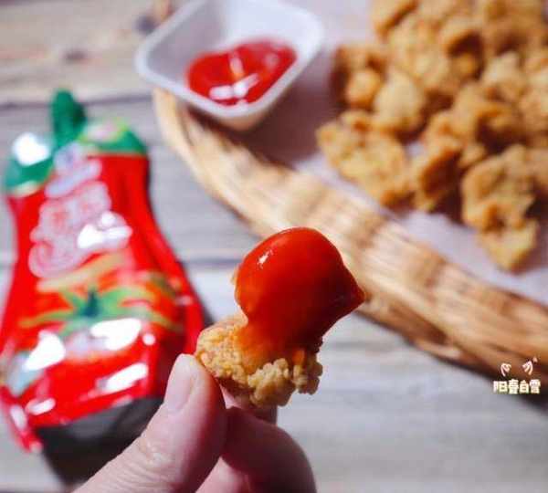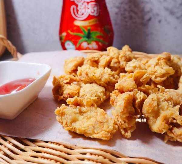原料:雞胸肉、鹽、黑胡椒碎、蠔油、生抽、白糖、雞蛋、玉米淀粉、白胡椒粉、面粉、番茄醬。