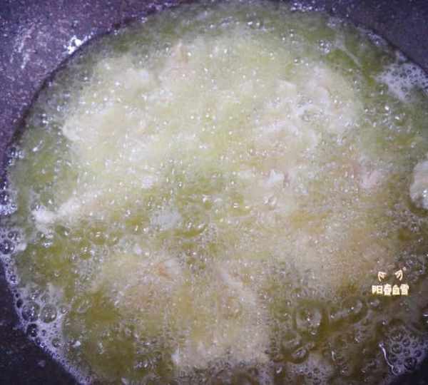 第11步、油溫六到七成熱開始下鍋炸。