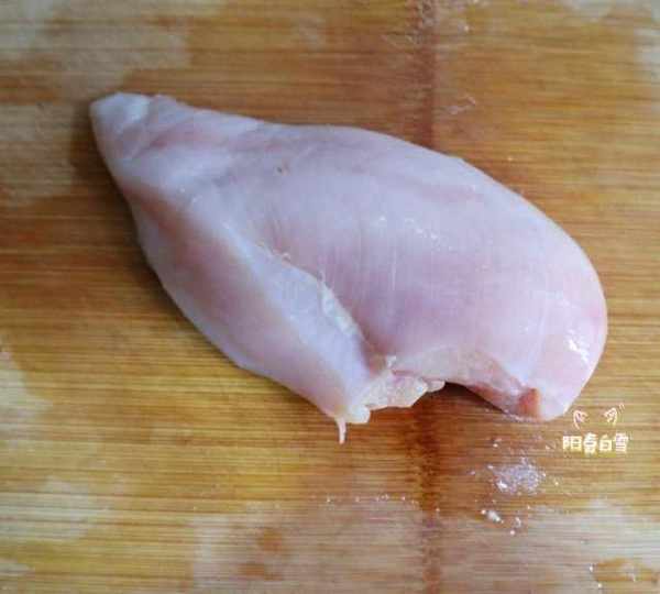 第1步、雞胸肉一塊去筋膜多餘的肥油。