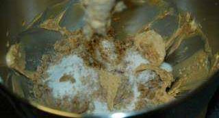 混合砂糖和紅糖成黃油。混合直至光滑。