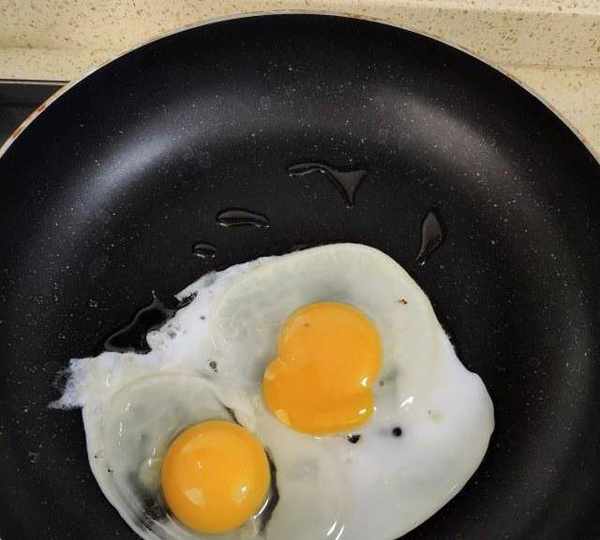 第2步、雞蛋打入平底鍋中,用筷子炒散,炒至雞蛋微微焦黃後關火取出。