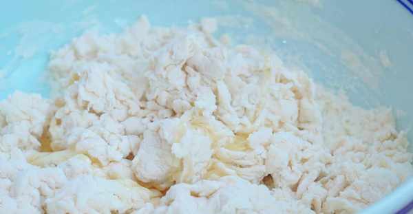 1,盆中倒入300克普通面粉,加入一勺食鹽增加面粉的筋性。再用180毫升的溫水和面隨到隨攪拌。